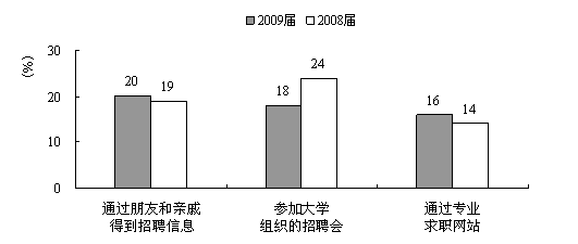 3-3-2 2009届与2008届“211”院校毕业生初次求职成功的渠道分布前3位对比