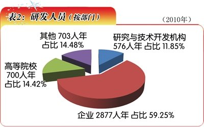 青海省全社会研发全时人员总数从2006年的2592人年增长到2010年的4856人年(表2)。