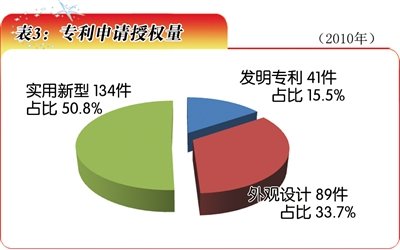 “十一五”时期,青海省专利授权量达1179件,是“十五”时期的2.77倍。2010年专利授权量达264件(表3),并获得国家科技奖励3项。